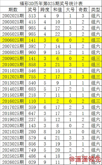从以上统计可以看出,历年3D第026期开出了9次组三号码,开出了15次组六号码。组三号码和组六号码基本相当,本期预计开出组六号码。