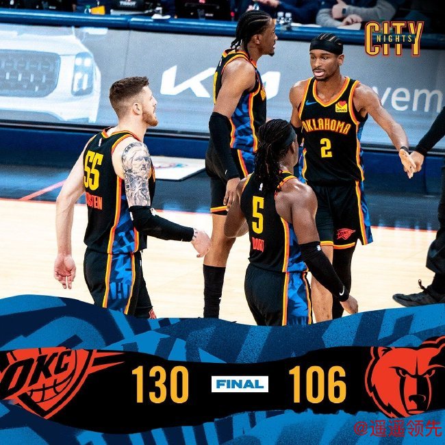 雷霆(26-5):亚历山大35分6篮板7助攻4封盖、米切尔17分3助攻、维金斯16分3篮板、杰伦-威廉姆斯14分10篮板8助攻、哈尔滕斯泰因12分9篮板6助攻、肯威12分3篮板3助攻、以赛亚-乔11分3篮板